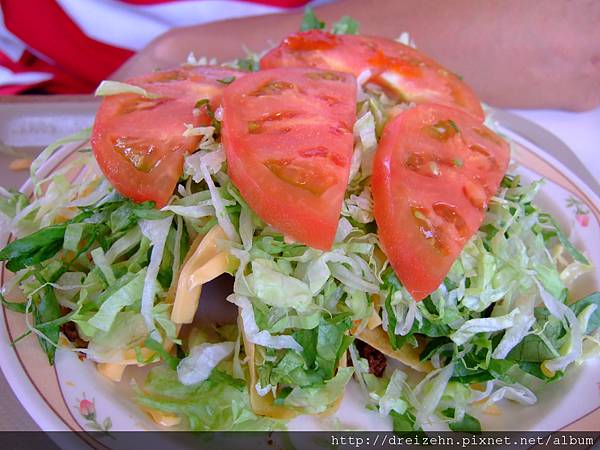 我們還點了一個タコス(4ピ-ス)(¥500)啊啊啊啊啊啊啊啊啊!(崩潰) 隔壁桌的大男生看到一定覺得我們很奇怪,某鳥一副文弱書生相,兩個人點這麼多吃得完才有鬼...但是,有我在,我們還是吃完啦!無肉不歡的我這輩子很少一口氣吃這麼多草,一整個飽。Orz (真的吃不完也不用勉強,旁邊有提供打包的餐盒) 看到我們吃完旁邊的男生應該更傻眼了。XDDDD